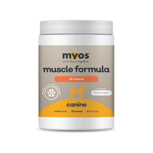 MYOS Muscle Formula (Canine and Feline) uses Fortetropin, which is clinically proven to build muscle and reduce muscle loss due to aging or injury.