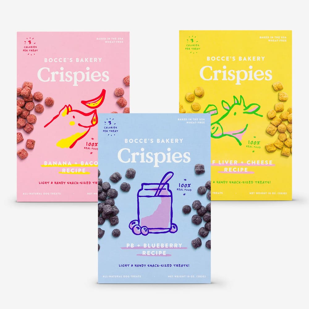Light and handy snack-sized treats! At only 3 calories per treat, Crispies are perfect for all-day snacking & training.