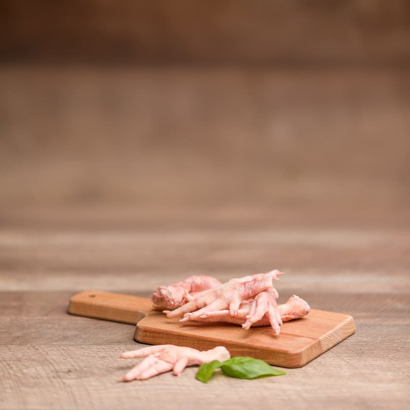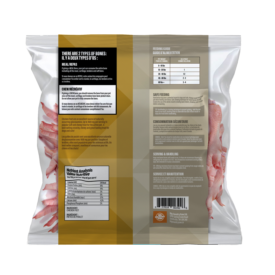 Our chicken feet are individual quick frozen and easy to serve! A very popular raw bone, each serving contains 1600 mg of naturally occurring glucosamine. The perfect raw bone for the active pet!
