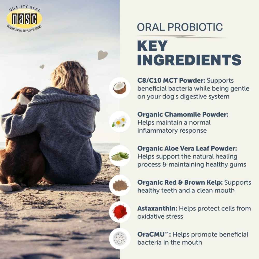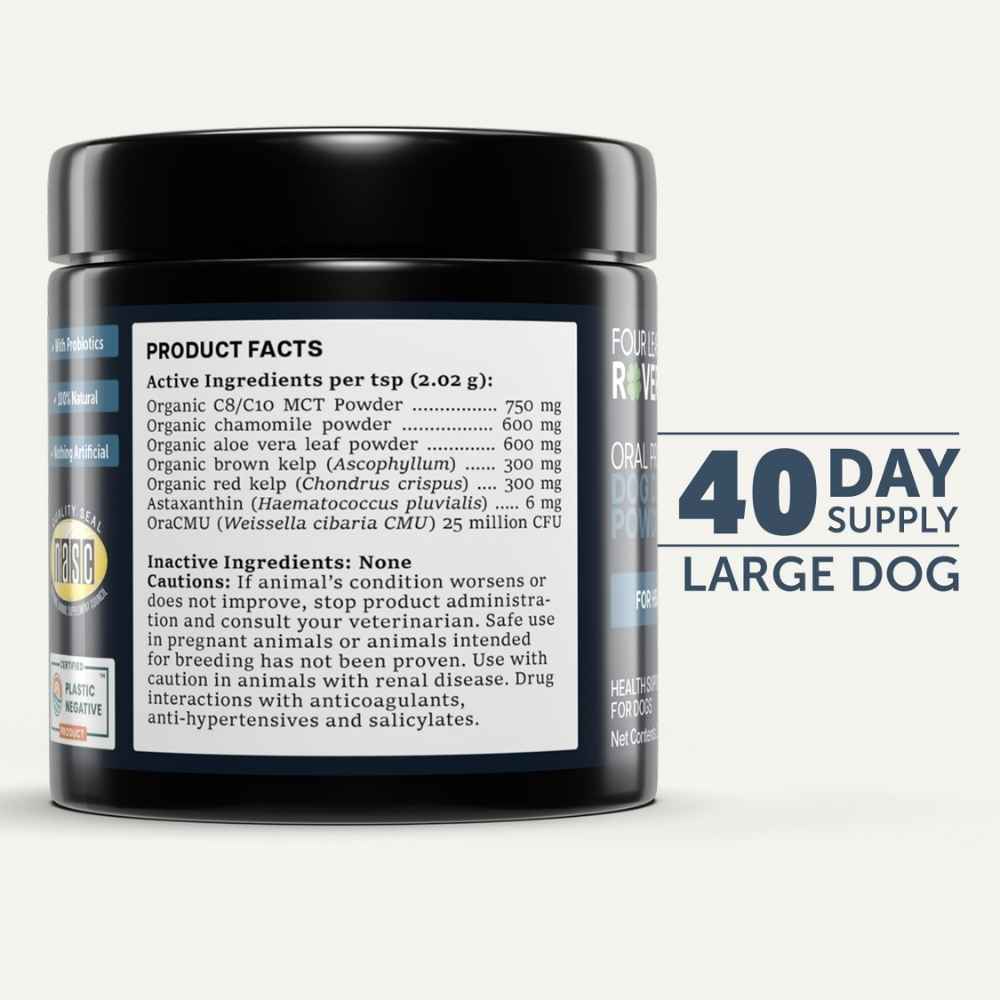 - Support Oral Health – Naturally: Four Leaf Rover’s Oral Probiotic is a science-backed dental powder for dogs that supports a healthy mouth microbiome. No synthetic flavors or unnatural additives – just clean, effective ingredients that work with your dog’s body.