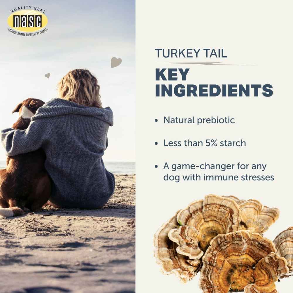 The fruiting body of the Turkey Tail mushroom contains very special beta-glucans called Polysaccharide-K (PSK) and Polysaccharide Peptide (PSP). These potent immune-enhancing substances make Turkey Tail a game-changer for any dog with immune stresses.