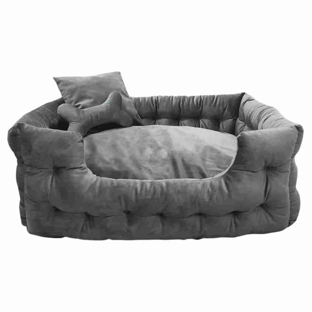 The luxury velour pet bed offers coziness and security for your pet. With a rich velour fabric and stylish design, it is a perfect addition to your home decor. The removable inside pillow makes it easy to keep clean. * Mini stuffed pillow and bone pillow are included!