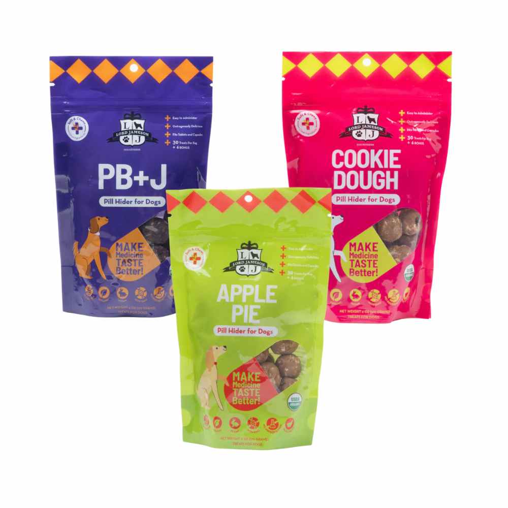 Lord Jameson Pill Hider collections features exciting flavors unlike the existing options on the market. These robust flavor profiles are designed to mask bitterness of medication, adding additional ease to the pill administration process.