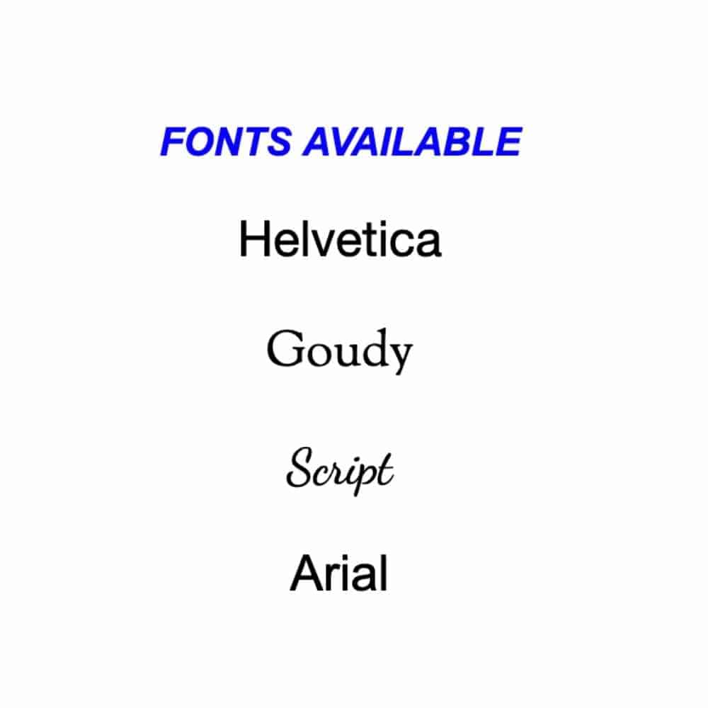 Choose your text and font style before adding it to the cart. The default font is Helvetica.