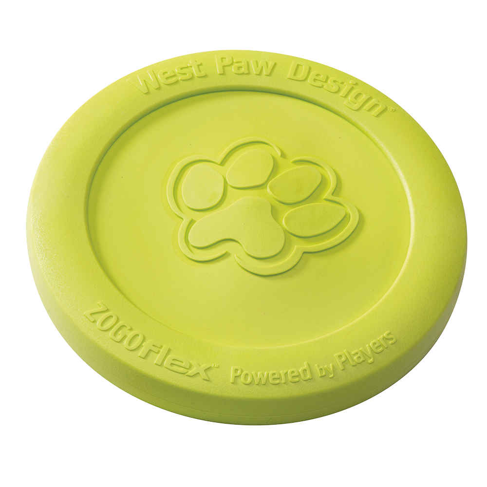 Zisc by West Paw is a lightweight, yet tough, high flying frisbee. The Zisc is gentle on dog’s mouths; it’s soft, pliable, floatable, and flies far.